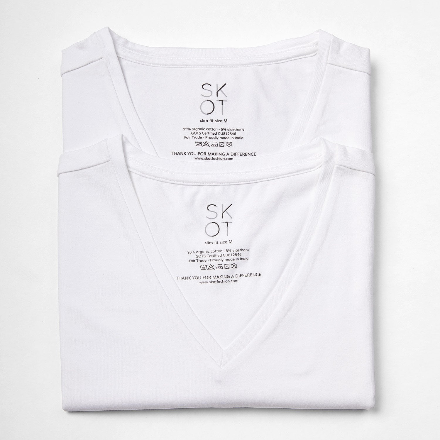 T-shirt Wit V-Hals Heren | 2-pack | Slim Fit