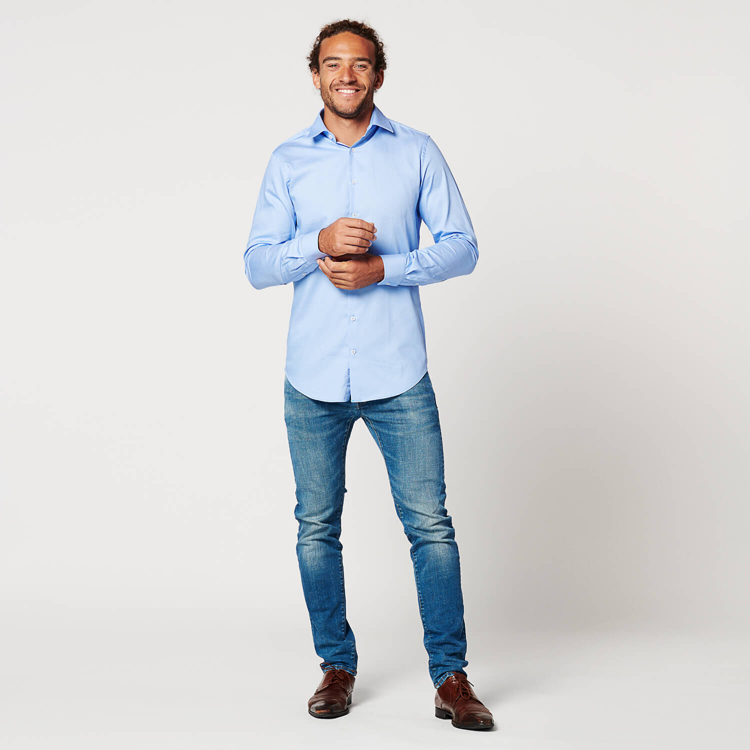 Our most sustainable shirt ever! With the Circular Blue you get a classic top quality shirt. The fabric of the shirts is made from recycled material and organic cotton, which saves a lot of CO2 emissions, waste, water and energy. The Circular Blue has a nice sleek design and a number of unique details. Like the cut-out for ribs and the embroidery “You make a Difference” on the inside of the sleeve.
