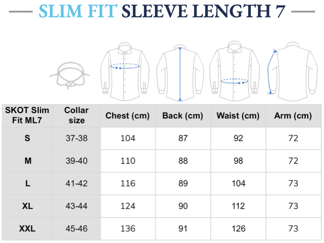 Available in Slim Fit and Regular Fit. The Slim Fit shirts are also available with sleeve length 7.